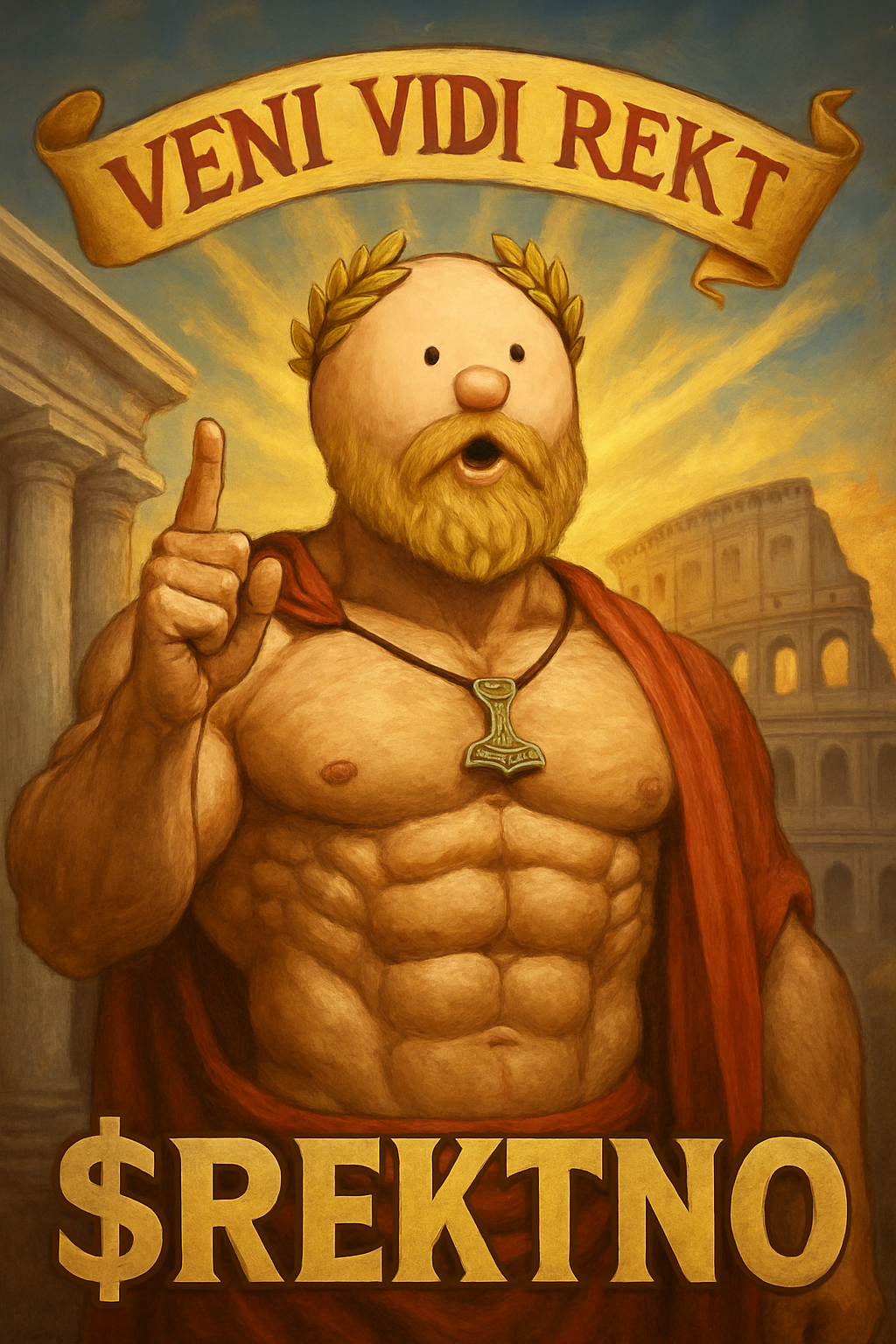 Twenty-six years on, the Techno Viking marches onto Solana. Same beard. Same Mjölnir. Same finger. This time he's pointing at every dev who tried to bundle, every sniper who tried to front-run, and every bagholder who paperhanded too early. You'll get rekt, or you'll dance with the Viking. There's no third option.